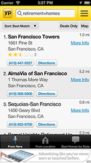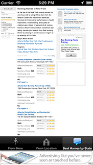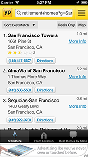 Flash Mobile Retirement Home Locator shows your exact address to to show distance to the homes near you and ratings on how the given home stacks up against its peers..