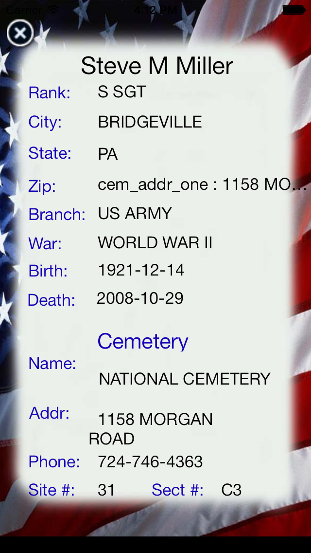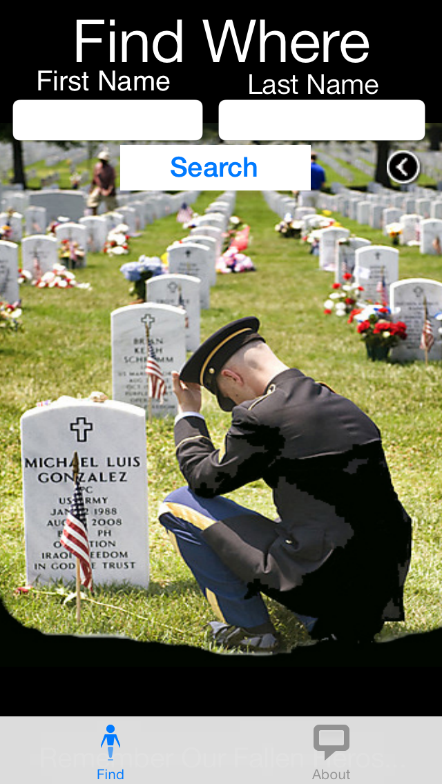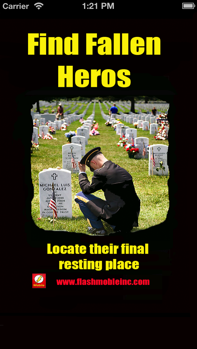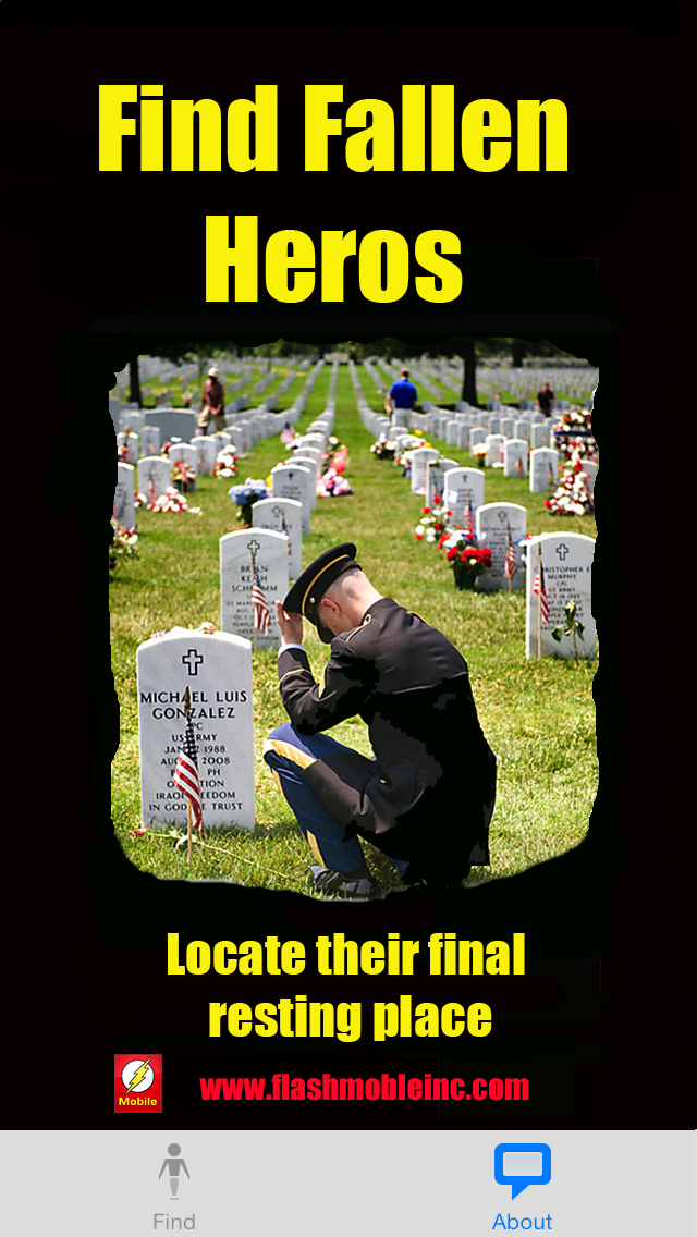 Flash Mobile Fallen Heros allows veterans, family and individuals to search for fallen heroes final resting places in veterans cemeteries. Given the first and last name of the United States Veteran the details about the service man or woman can be found in the U.S. Veterans Administration database and first present a list of all individuals with that first and last name and their middle names and ranks. It is hoped that this application will prove useful to all trying to track down the final resting place of our U.S. Veterans. This application was created by a Vietnam vet for other vets an their families and friends.